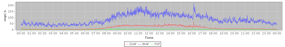 Host zm07.stanford.edu: Mailboxd: Request Rate by Client Protocol