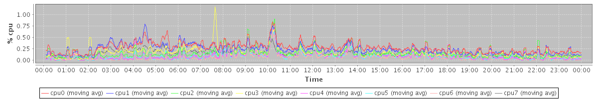 avg(cpu0) = 1.43 avg(cpu1) = 1.33 avg(cpu2) = 0.98 avg(cpu3) = 0.98 avg(cpu4) = 0.71 avg(cpu5) = 0.71 avg(cpu6) = 0.53 avg(cpu7) = 0.96