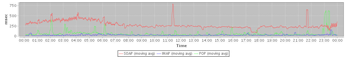 Host zm04.stanford.edu: Mailboxd: Response Time by Client Protocol