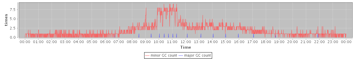 avg(minor GC count) = 1.89 avg(major GC count) = 0.01