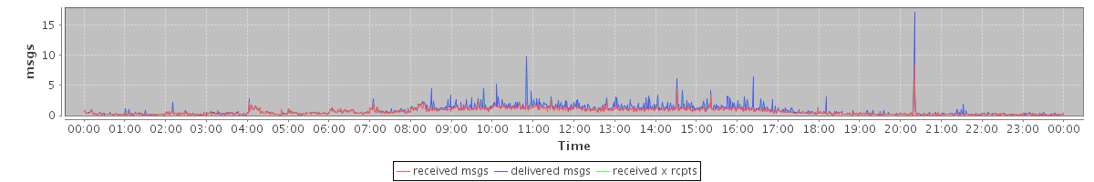 avg(received msgs) = 0.65 avg(delivered msgs) = 0.85 avg(received x rcpts) = 0.86