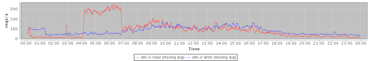 avg(dm-1 read) = 108.54 avg(dm-1 write) = 28.26