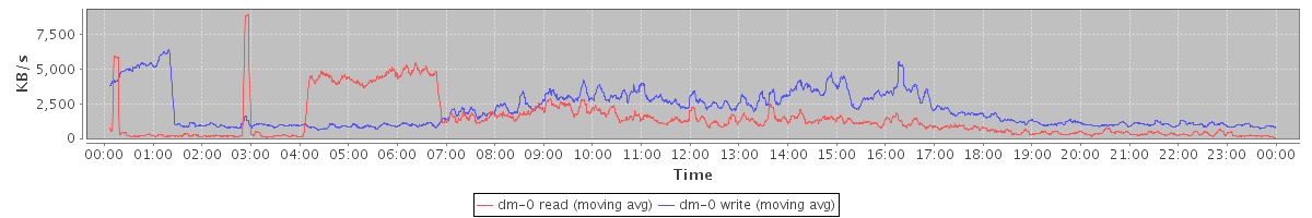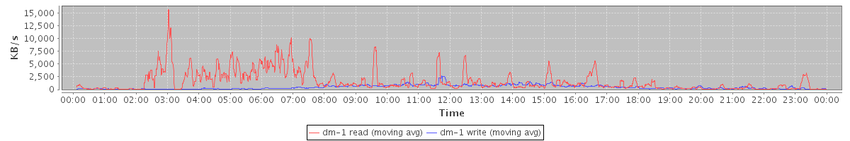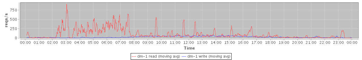 avg(dm-1 read) = 1604.61 avg(dm-1 write) = 460.79