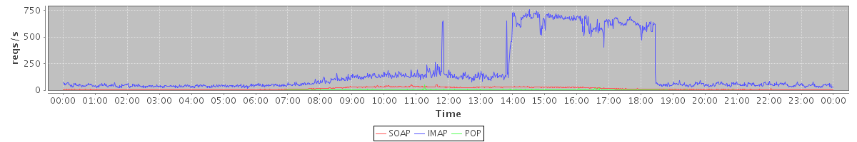 Host zm07.stanford.edu: Mailboxd: Request Rate by Client Protocol