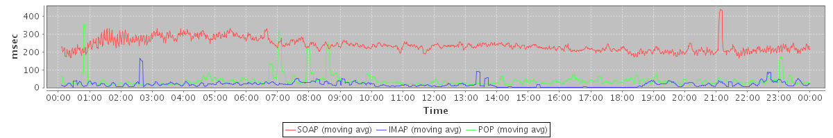 avg(SOAP) = 14.24 avg(IMAP) = 181.01 avg(POP) = 3.46