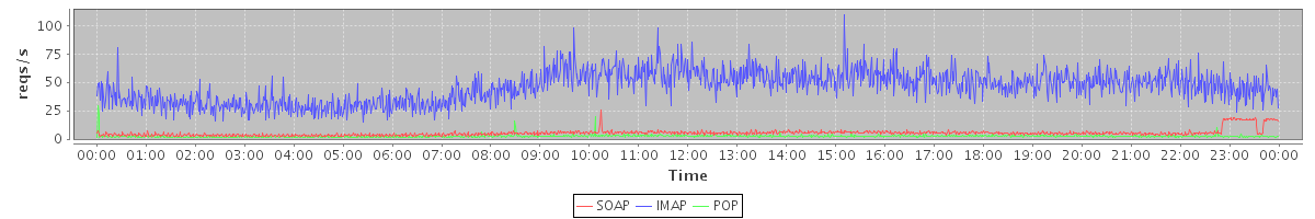 Host zm05.stanford.edu: Mailboxd: Request Rate by Client Protocol