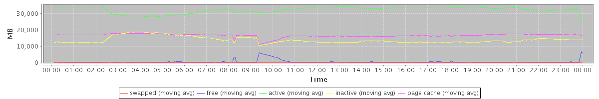 avg(swapped) = 22.87 avg(free) = 642.29 avg(active) = 32294.95 avg(inactive) = 13968.16 avg(page cache) = 16740.20