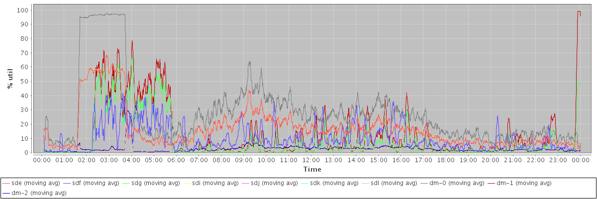 avg(sde) = 17.06 avg(sdf) = 10.18 avg(sdg) = 9.04 avg(sdi) = 17.06 avg(sdj) = 10.17 avg(sdk) = 9.05 avg(sdl) = 1.71 avg(dm-0) = 28.20 avg(dm-1) = 12.46 avg(dm-2) = 2.72
