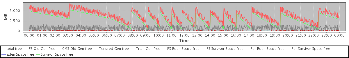 avg(total free) = 3795.78 avg(PS Old Gen free) = 0.00 avg(CMS Old Gen free) = 2945.86 avg(Tenured Gen free) = 0.00 avg(Train Gen free) = 0.00 avg(PS Eden Space free) = 0.00 avg(PS Survivor Space free) = 0.00 avg(Par Eden Space free) = 786.18 avg(Par Survivor Space free) = 63.74 avg(Eden Space free) = 0.00 avg(Survivor Space free) = 0.00