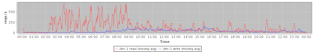 avg(dm-1 read) = 1714.55 avg(dm-1 write) = 534.15