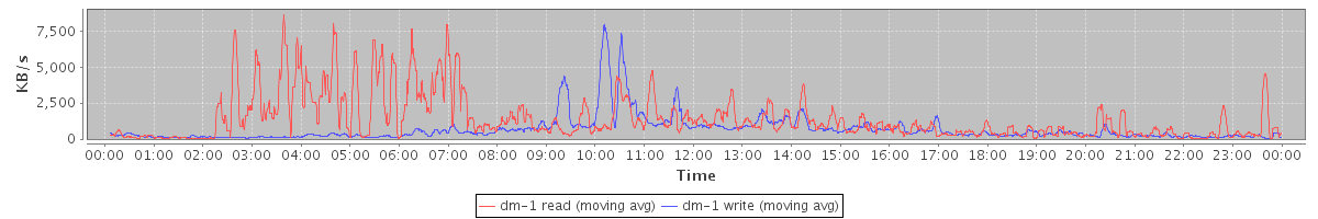 avg(dm-1 read) = 1390.71 avg(dm-1 write) = 663.46