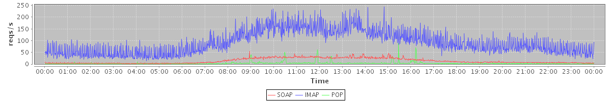 Host zm09.stanford.edu: Mailboxd: Request Rate by Client Protocol