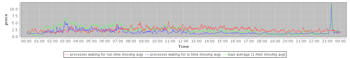 avg(processes waiting for run time) = 2.29 avg(processes waiting for io time) = 1.11 avg(load average (1 min)) = 2.52
