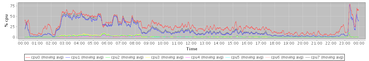 avg(cpu0) = 0.30 avg(cpu1) = 0.25 avg(cpu2) = 0.19 avg(cpu3) = 0.14 avg(cpu4) = 0.11 avg(cpu5) = 0.09 avg(cpu6) = 0.06 avg(cpu7) = 0.13