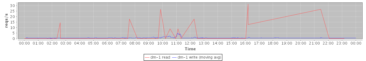 avg(dm-1 read) = 0.06 avg(dm-1 write) = 0.83