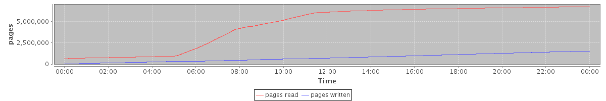 avg(pages read) = 4572484.61 avg(pages written) = 738507.06
