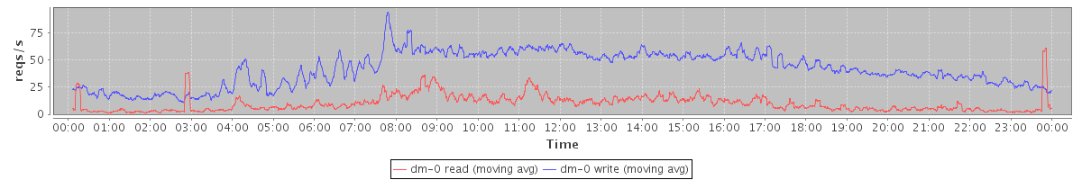 avg(dm-1 read) = 0.05 avg(dm-1 write) = 57.00