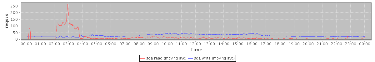 avg(sda read) = 15.25 avg(sda write) = 28.59