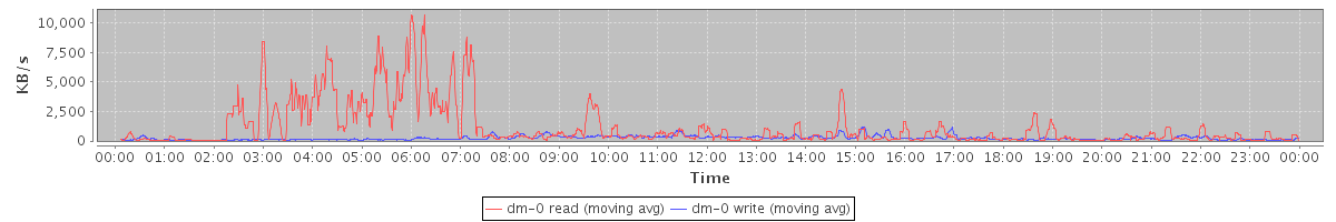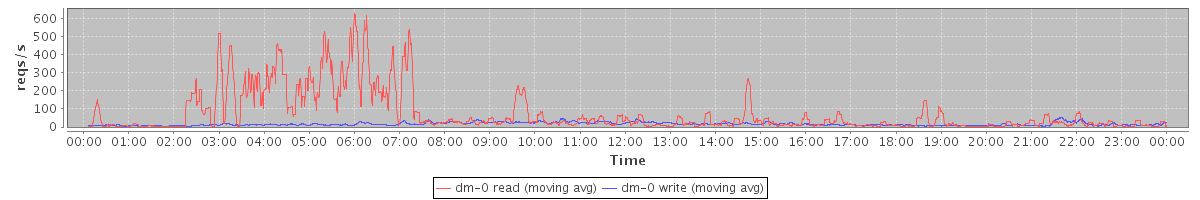 avg(dm-1 read) = 0.07 avg(dm-1 write) = 0.94