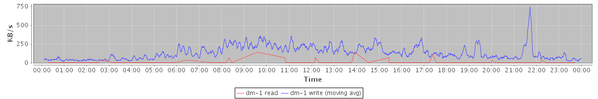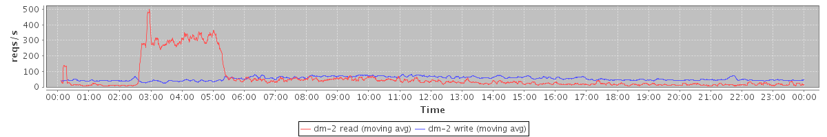 avg(dm-1 read) = 0.30 avg(dm-1 write) = 134.75