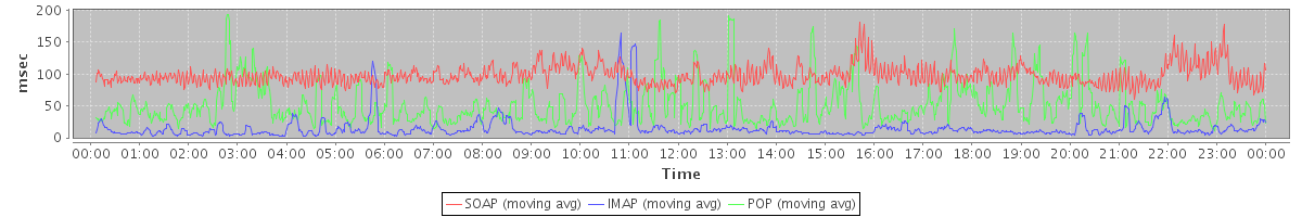avg(IMAP) = 86.70 avg(IMAP SSL) = 321.55 avg(POP) = 0.01 avg(POP SSL) = 0.52