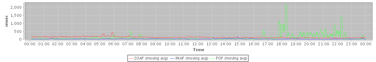 avg(SOAP) = 4.29 avg(IMAP) = 20.34 avg(POP) = 7.40