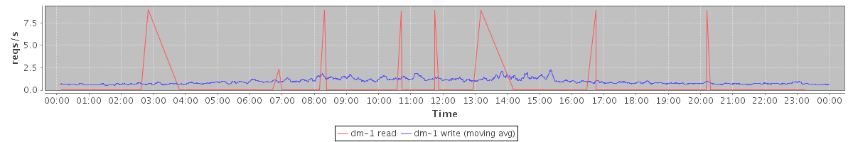 avg(dm-1 read) = 0.09 avg(dm-1 write) = 142.14