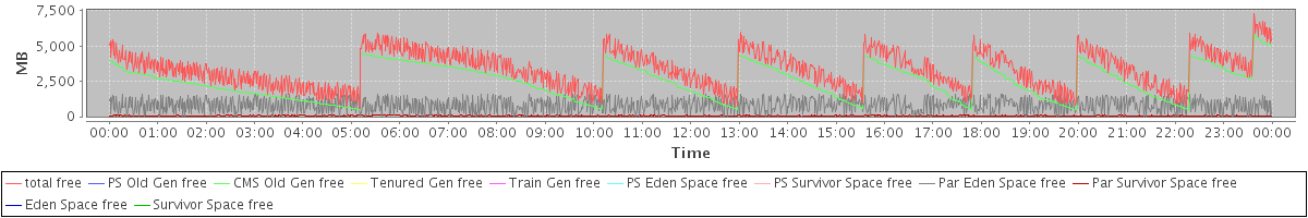 avg(total free) = 3370.80 avg(PS Old Gen free) = 0.00 avg(CMS Old Gen free) = 2494.92 avg(Tenured Gen free) = 0.00 avg(Train Gen free) = 0.00 avg(PS Eden Space free) = 0.00 avg(PS Survivor Space free) = 0.00 avg(Par Eden Space free) = 816.64 avg(Par Survivor Space free) = 59.24 avg(Eden Space free) = 0.00 avg(Survivor Space free) = 0.00
