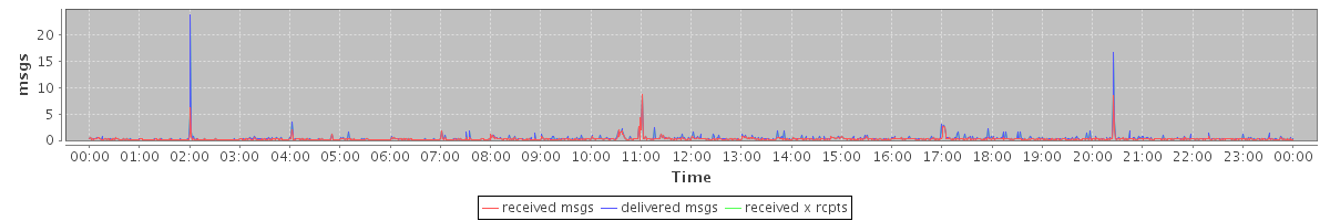 avg(received msgs) = 0.26 avg(delivered msgs) = 0.36 avg(received x rcpts) = 0.36