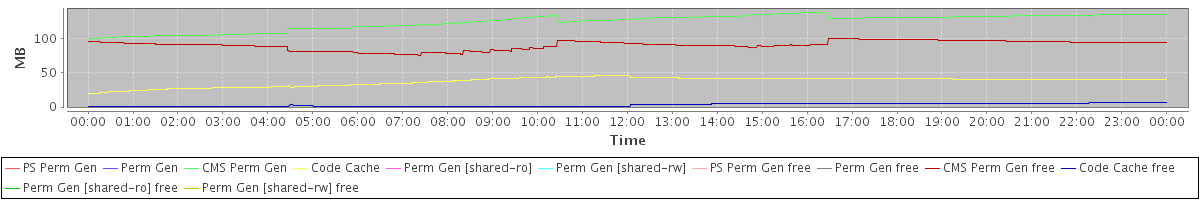 avg(PS Perm Gen) = 0.00 avg(Perm Gen) = 0.00 avg(CMS Perm Gen) = 124.25 avg(Code Cache) = 37.57 avg(Perm Gen [shared-ro]) = 0.00 avg(Perm Gen [shared-rw]) = 0.00 avg(PS Perm Gen free) = 0.00 avg(Perm Gen free) = 0.00 avg(CMS Perm Gen free) = 90.53 avg(Code Cache free) = 2.87 avg(Perm Gen [shared-ro] free) = 0.00 avg(Perm Gen [shared-rw] free) = 0.00