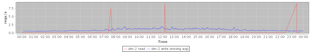 avg(dm-2 read) = 0.04 avg(dm-2 write) = 141.60