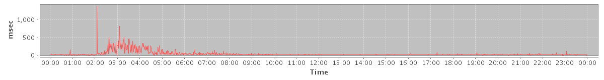 avg(SendMsgRequest) = 286.18 avg(DeleteAccountRequest) = 6345.00 avg(BackupQueryRequest) = 419.60 avg(GetAggregateQuotaUsageOnServerRequest) = 982.00 avg(CheckRecurConflictsRequest) = 548.87 avg(ApplyFilterRulesRequest) = 2399.00 avg(CheckRightsRequest) = 326.49 avg(FolderActionRequest.empty) = 341.82 avg(BackupRequest) = 1753.50 avg(GetQuotaUsageRequest) = 1116.00