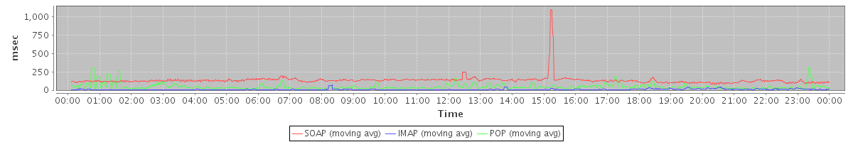 Host zm03.stanford.edu: Mailboxd: Response Time by Client Protocol