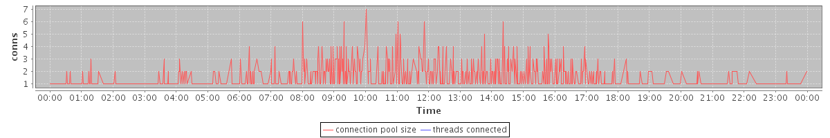 avg(connection pool size) = 0.85 avg(threads connected) = 0.00