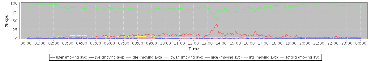 avg(user) = 7.84 avg(sys) = 0.73 avg(idle) = 87.68 avg(iowait) = 3.64 avg(nice) = 0.00 avg(irq) = 0.00 avg(softirq) = 0.11