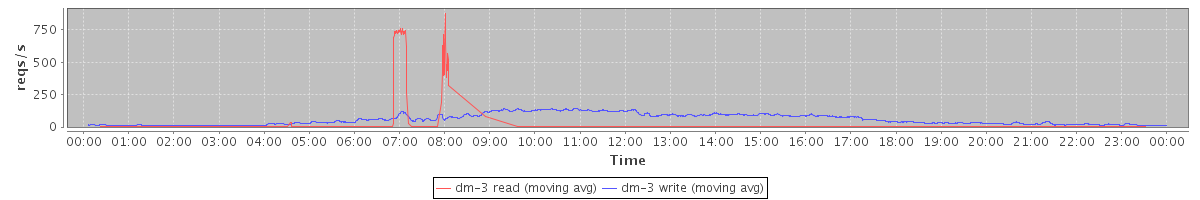 avg(dm-3 read) = 744.75 avg(dm-3 write) = 1055.16
