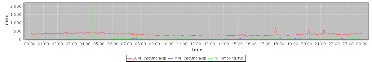 Host zm09.stanford.edu: Mailboxd: Response Time by Client Protocol