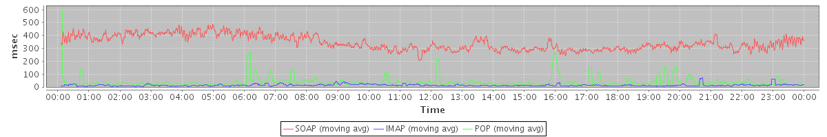 Host zm09.stanford.edu: Mailboxd: Response Time by Client Protocol