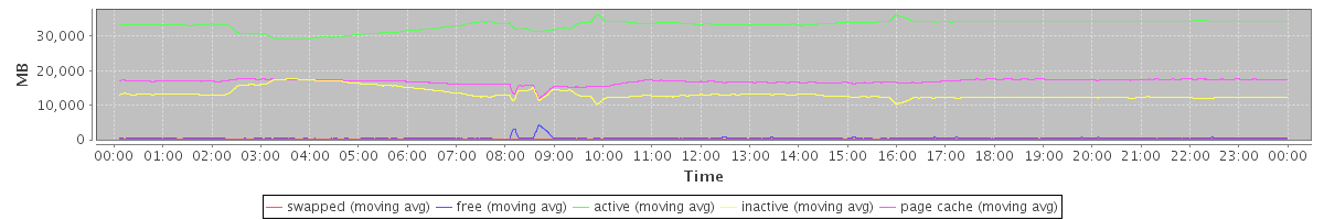 avg(swapped) = 12.52 avg(free) = 448.46 avg(active) = 33176.97 avg(inactive) = 13235.92 avg(page cache) = 16828.18
