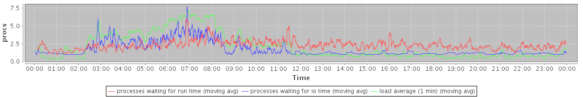 avg(processes waiting for run time) = 1.94 avg(processes waiting for io time) = 1.10 avg(load average (1 min)) = 2.11