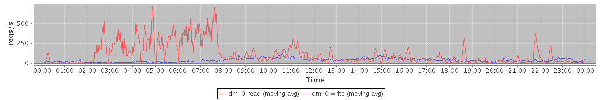 avg(dm-1 read) = 0.07 avg(dm-1 write) = 1.46