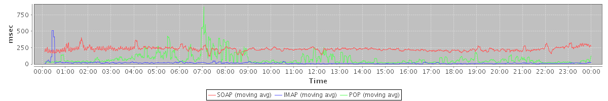 Host zm04.stanford.edu: Mailboxd: Response Time by Client Protocol