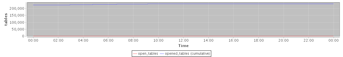 avg(open_tables) = 1188.59 avg(opened_tables (cumulative)) = 230505.80
