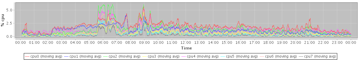 avg(cpu0) = 0.42 avg(cpu1) = 0.20 avg(cpu2) = 0.29 avg(cpu3) = 0.09 avg(cpu4) = 0.57 avg(cpu5) = 0.07 avg(cpu6) = 0.14 avg(cpu7) = 0.04