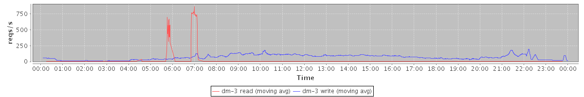avg(dm-3 read) = 743.84 avg(dm-3 write) = 1127.66