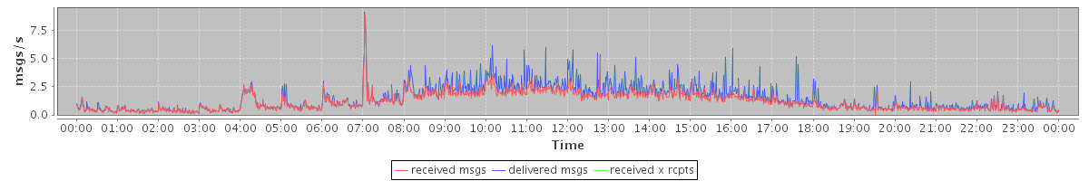 avg(received msgs) = 1.18 avg(delivered msgs) = 1.46 avg(received x rcpts) = 1.47