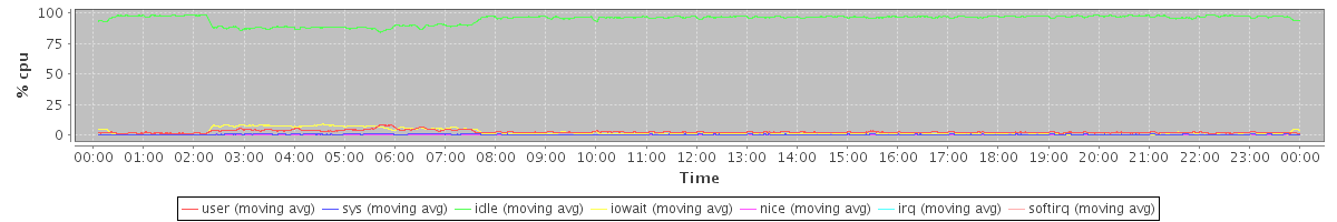 avg(user) = 2.52 avg(sys) = 0.42 avg(idle) = 94.81 avg(iowait) = 2.20 avg(nice) = 0.00 avg(irq) = 0.00 avg(softirq) = 0.04