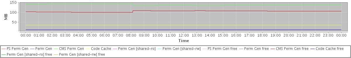 avg(PS Perm Gen) = 0.00 avg(Perm Gen) = 0.00 avg(CMS Perm Gen) = 138.43 avg(Code Cache) = 35.41 avg(Perm Gen [shared-ro]) = 0.00 avg(Perm Gen [shared-rw]) = 0.00 avg(PS Perm Gen free) = 0.00 avg(Perm Gen free) = 0.00 avg(CMS Perm Gen free) = 104.44 avg(Code Cache free) = 11.15 avg(Perm Gen [shared-ro] free) = 0.00 avg(Perm Gen [shared-rw] free) = 0.00