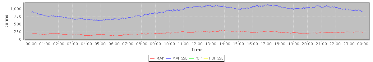 Host zm07.stanford.edu: Mailboxd: Active Connections by Client Protocol