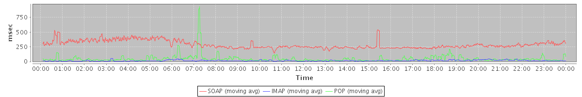 Host zm09.stanford.edu: Mailboxd: Response Time by Client Protocol